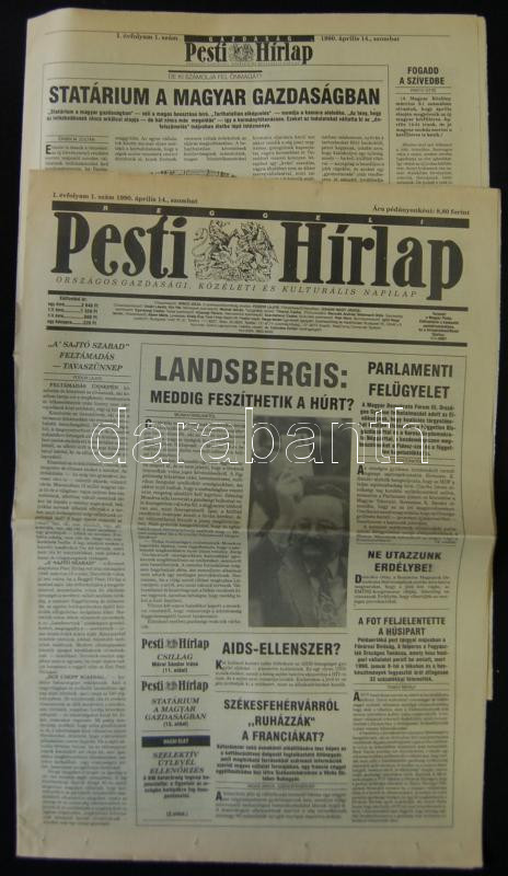 1990 A Pesti Hírlap induló száma a rendszerváltozás híreivel https://www.darabanth.com/hu/150-Gyorsarveres/150.0/Festmeny-mutargy-papirregiseg-egyeb/Tortenelmi-dokumentumok-keziratok-erdekessegek~39/1990-A-Pesti-Hirlap-indulo-szama-a-rendszervaltozas-hireivel~II458904