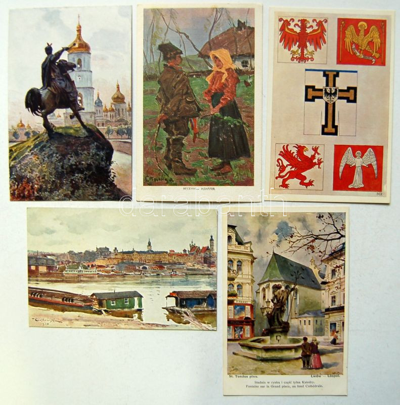 Leírás: 5 db megíratlan háború előtti, jó minőségű, művészi lengyel képeslap