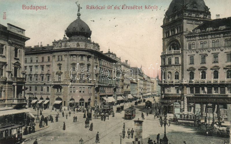 Budapest VII. Rákóczi út és Erzsébet körút villamosokkal https://www.darabanth.com/hu/150-Gyorsarveres/150.0/Kepeslapok/Magyarorszag~23/Budapest-VII-Rakoczi-ut-es-Erzsebet-korut-villamosokkal~II457875