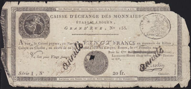 Leírás: Franciaország / Rouen 1797-1803. 20Fr T:IV- R!
