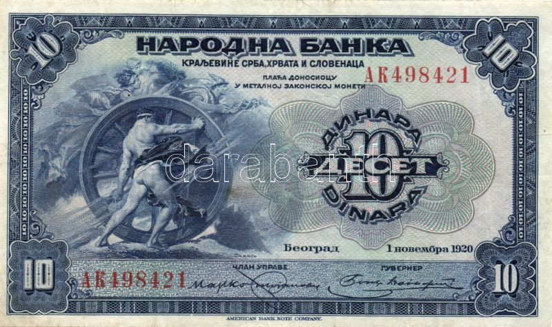 Jugoszlávia/Szerb,Horvát és Szlovén Királyság 1920. 10D T:II-(kissé gy... https://www.darabanth.com/hu/150-Gyorsarveres/150.0/Numizmatika/Kulfoldi-bankjegyek~13/JugoszlaviaSzerb-Horvat-es-Szloven-Kiralysag-1920-10D-TII-kisse-gyurott-de-nagyon-sze~II435039