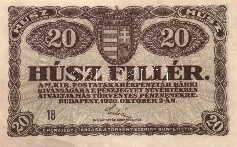 1920. 20f (3x) eltérő színváltozatok T:II,II- https://www.darabanth.com/hu/150-Gyorsarveres/150.0/Numizmatika/Magyar-bankjegyek~9/1920-20f-3x-eltero-szinvaltozatok-TII-II-~II454930