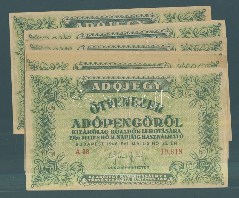 Leírás: 1946. 50.000AP (6x) eltérő szín-és egyéb változatok T:II