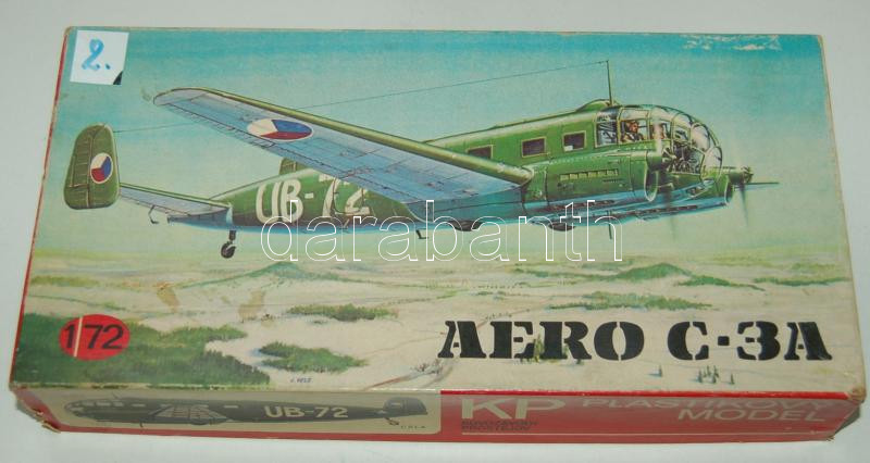 Leírás: Aero-C3 típusú repülőgép makett minden darabbal, matricákkal és leírással eredeti dobozban