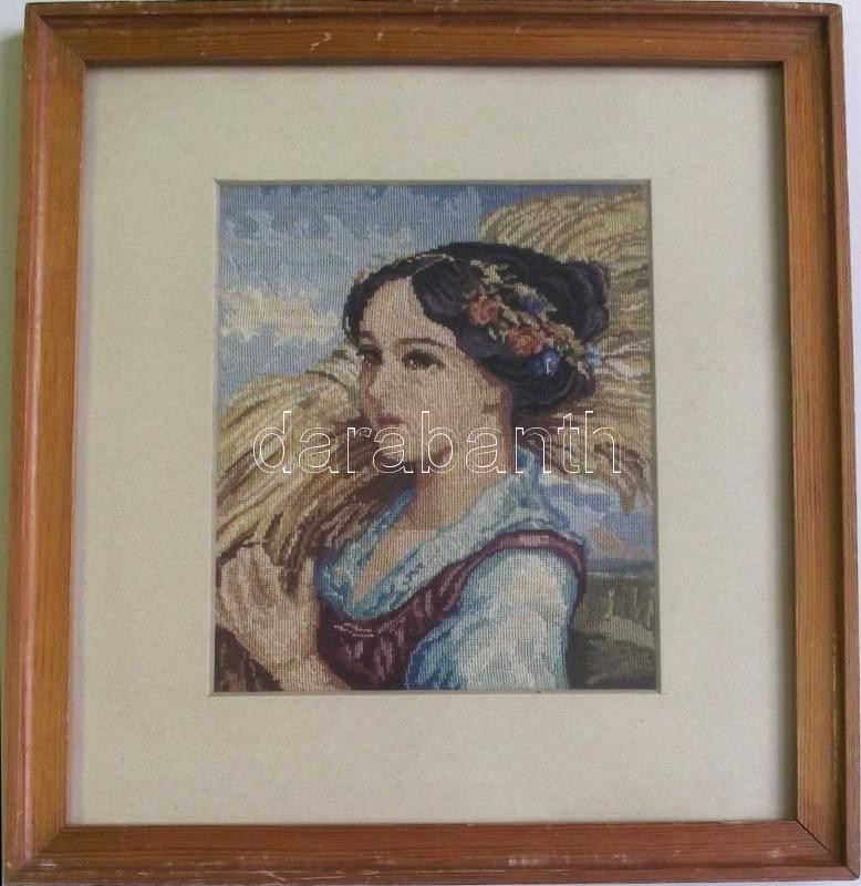 Leírás: Lányt ábrázoló gobelin keretben 31x34cm
