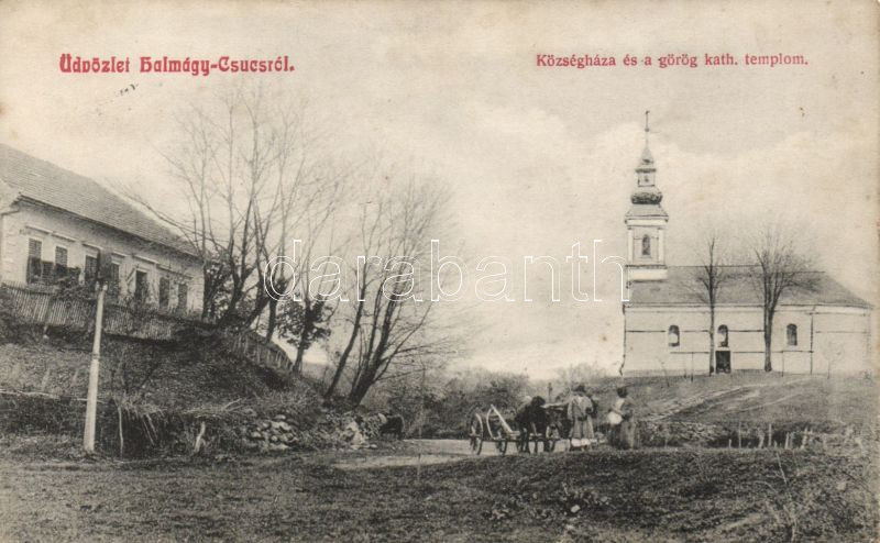 Leírás: Halmágycsúcs town hall and Greek catholic church