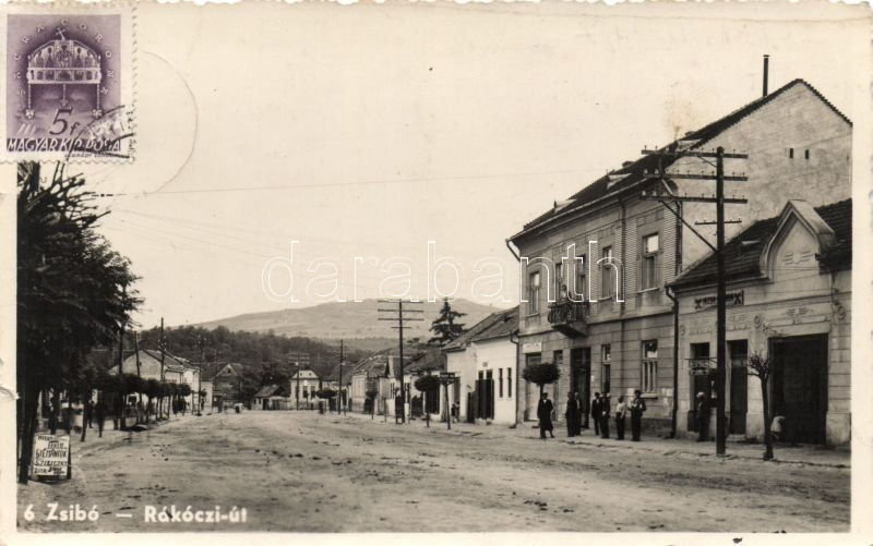 Zsibó Rákóczi street with cinema placard (small tear) https://www.darabanth.com/hu/151-Gyorsarveres/151.0/Kepeslapok/Erdely~500035/Zsibo-Rakoczi-street-with-cinema-placard-small-tear~II465529