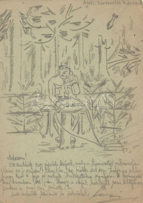 Military WWII hand-drawn postcard, humour https://www.darabanth.com/hu/151-Gyorsarveres/151.0/Kepeslapok/Katonai~500114/Military-WWII-hand-drawn-postcard-humour~II465440