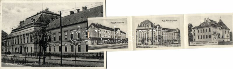 Leírás: Balassagyarmat vármegyeháza leporellocard vasútállomással