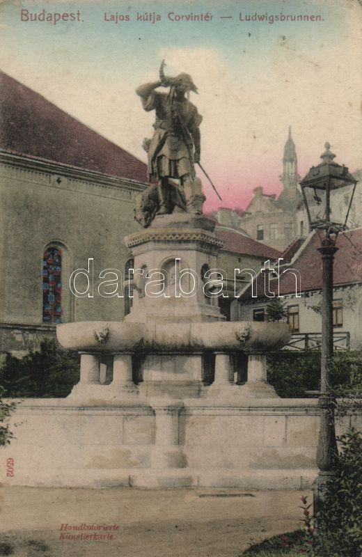 Leírás: Budapest I. Corvin tér Lajos kútja