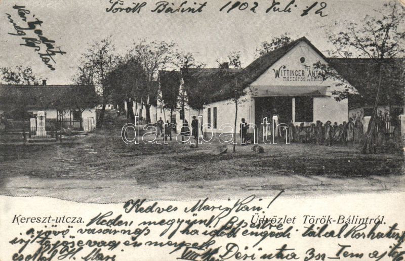 Törökbálint Kereszt utca, Wittinger Antal mészárosüzletével https://www.darabanth.com/hu/151-Gyorsarveres/151.0/Kepeslapok/Magyarorszag~500034/Torokbalint-Kereszt-utca-Wittinger-Antal-meszarosuzletevel~II462603