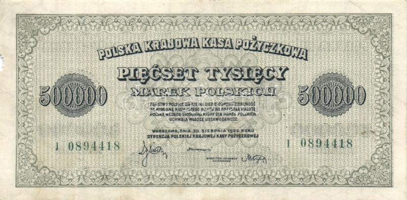 Poland/Polish State Loan Bank/inflation issues 1923. 500.000 Marek C:F