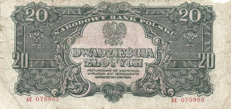 Lengyelország/II.V.H. Lengyel Nemzeti Felszabadítási Bizottság/Lengyel Nemzeti Bank 1944. 20Zl + Ideiglenes Nemzeti Egységkormány 1946. 1000Zl T:III-,II-