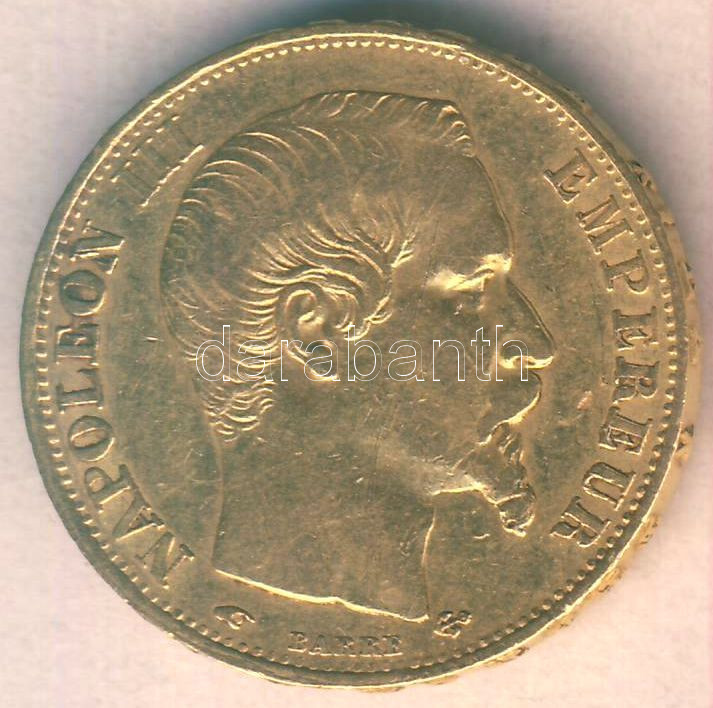 Leírás: Franciaország/Második Császárság 1857A 20Fr Au 6,4516g "III. Napóleon" T:2-/3 k.