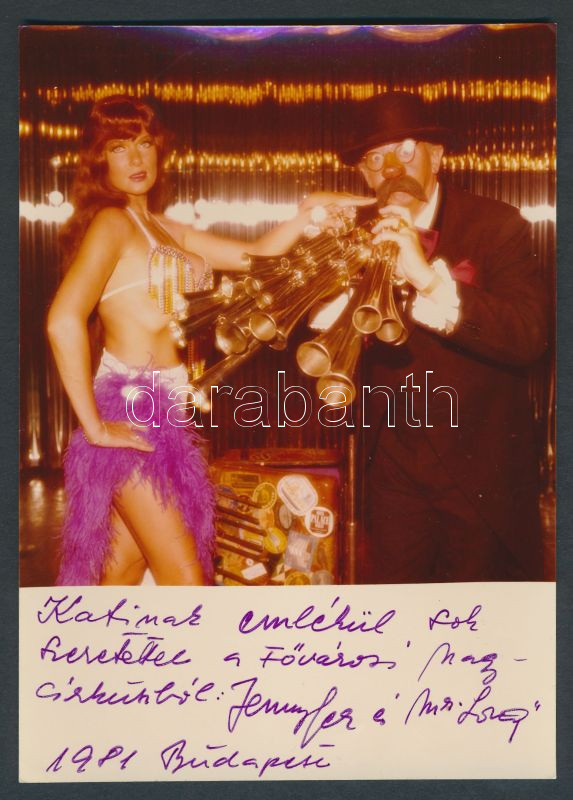 Leírás: 1981 A Fővárosi Nagycirkusz artistái: Jennyfer és Mr. Lovag? dedikált fotó