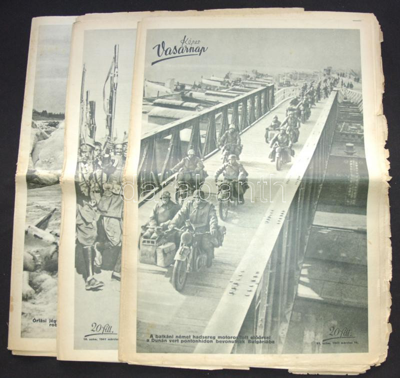 Leírás: 1941 Képes Vasárnap folyóirat 4db száma érdekes cikkekkel: vadászat, árvíz, militária, egyéb