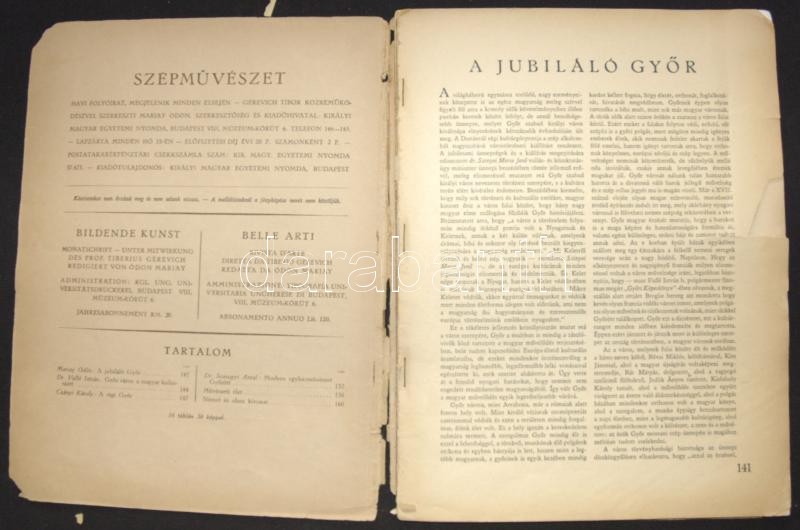 1943 Mariay Ödön: Szépművészet folyóirat IV. évfolyam 8. száma - A jub... https://www.darabanth.com/hu/152-Gyorsarveres/152.0/Festmeny-mutargy-papirregiseg-egyeb/Nyomtatvanyok~236/1943-Mariay-Odon-Szepmuveszet-folyoirat-IV-evfolyam-8-szama--A-jubilalo-Gyor~II469563