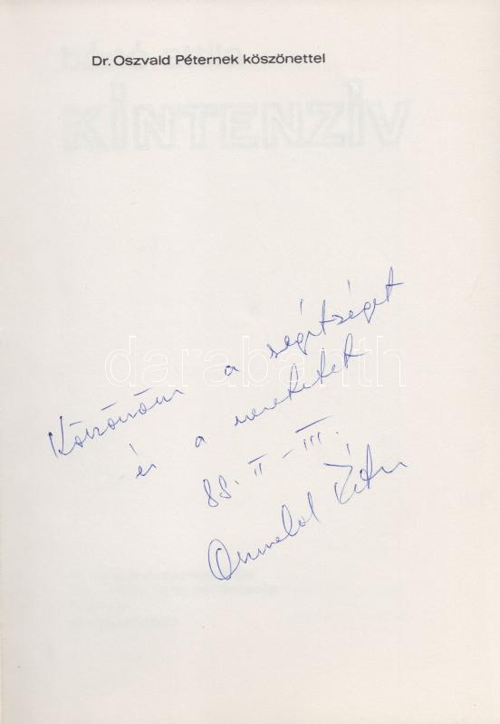 Leírás: 1983 Bánó Attila: Kíntenzív - karikatúrák könyve, Dr. Oszvald Péter köszönetnyilvánításával és aláírásával