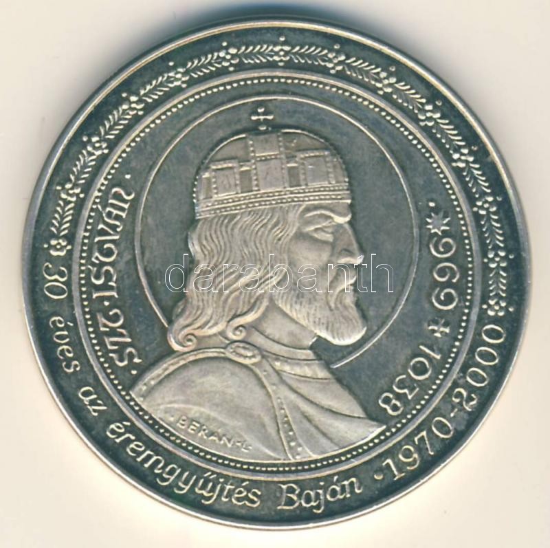 Leírás: 2000. "30 éves az éremgyűjtés Baján 1970-2000" (Szent István/naptár) Ag emlékérem szign.Berán 33,77g (d=42mm) T:exPP