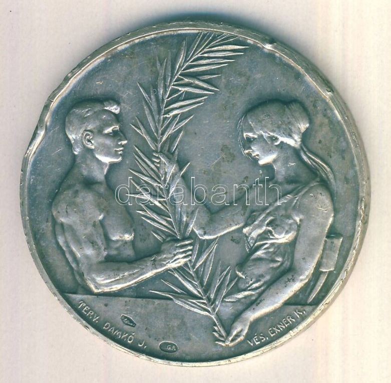 Leírás: ~1900 Magyarországi Testedző-Egyesületek Szövetsége Ag 40,6g emlékérem szign:Terv.Damkó J. / Vés.Exner K. (d=45mm) T:2-