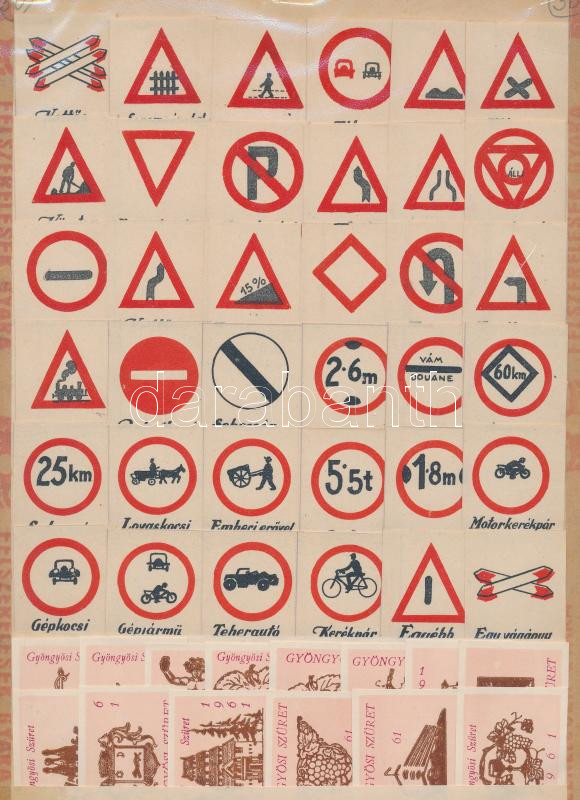 Leírás: 192db klf magyar gyufacímke - 15 éves a Budapesti honvéd, Közlekedési táblák és gyöngyösi szüret sorozatok, Kocsik és Uralkodók pénzei - 3 színben