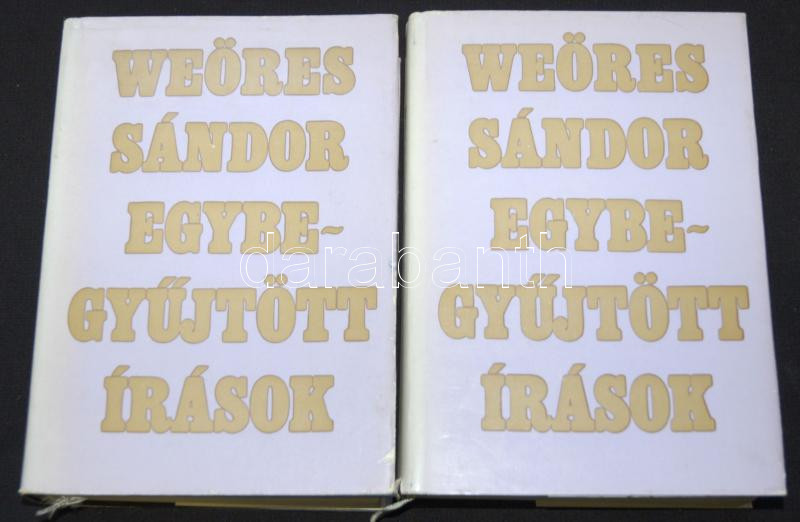 Weöres Sándor: Egybegyűjtött írások. I-II. https://www.darabanth.com/hu/153-Gyorsarveres/153.0/Festmeny-mutargy-papirregiseg-egyeb/Konyvek-Egyeb-ritkasagok~500027/Weores-Sandor-Egybegyujtott-irasok-I-II~II477242