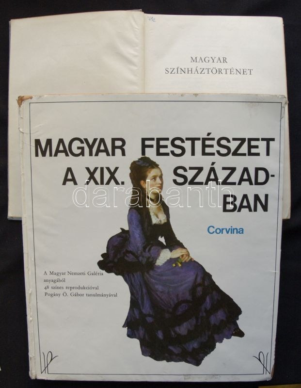 1962 Magyar Színháztörténet, Gondolat Kiadó, Bp., képekkel illusztrálva, kiadói egészvászon kötésben, jó állapotban + 1970 Pogány Ö. Gábor: Magyar festészet a XIX. században, Corvina Kiadó, Bp., színes képekkel tűzdelve