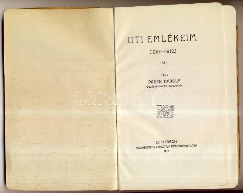 Esztergom, 1912. Buzárovits Gu... https://www.darabanth.com/hu/153-Gyorsarveres/153.0/Festmeny-mutargy-papirregiseg-egyeb/Konyvek-Utazas-varosok~500018/Pauer-Karoly-Uti-emlekeim-1910-1912-3Cbr3EEsztergom-1912-Buzarovits-Gusztav-233-p-Papir~II466270
