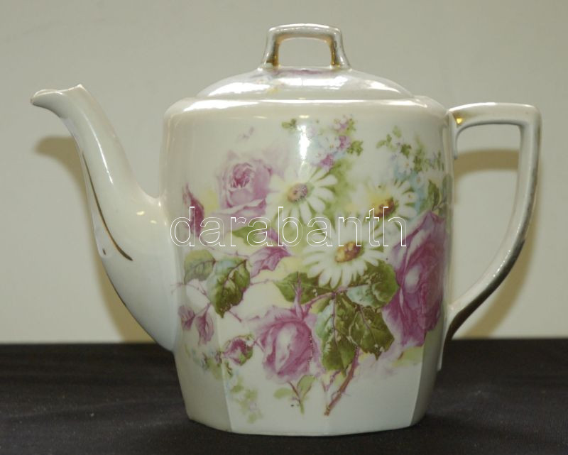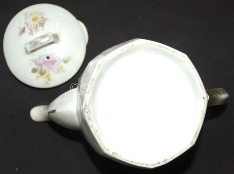 Leírás: Virágokkal díszített sorszámozott porcelán teás kancsó / Numbered chinaware tea-jug 17cm