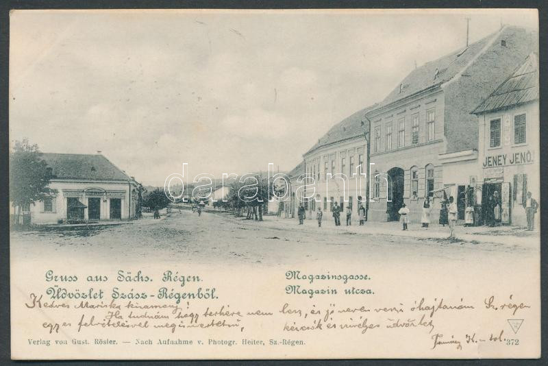 Szászrégen Magazin street, the shop of Jenő Jeney (small tear) https://www.darabanth.com/hu/153-Gyorsarveres/153.0/Kepeslapok/Erdely~500038/Szaszregen-Magazin-street-the-shop-of-Jeno-Jeney-small-tear~II473386