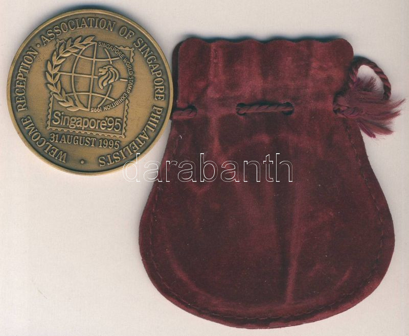 Leírás: Szingapúr 1995. "Bélyeg-világkiállítás - Szingapúr" Br emlékérem T:1 plüss szütyőben / Singapore 1995. "Singapore World Stamp Exhibition" Br medallion T:1