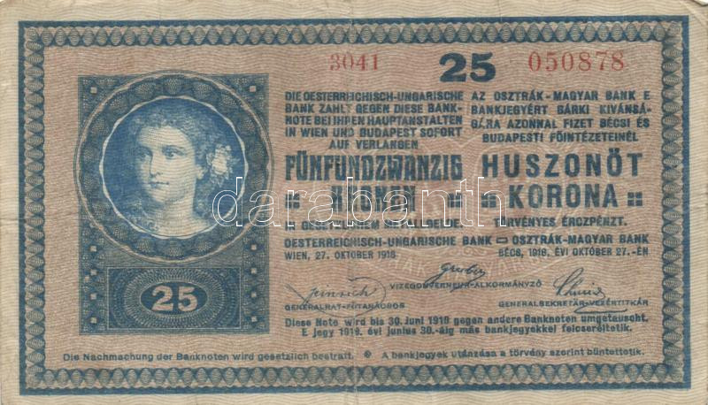 Leírás: 1918. 25K "sima" "3041"-es sorozatszám T:III