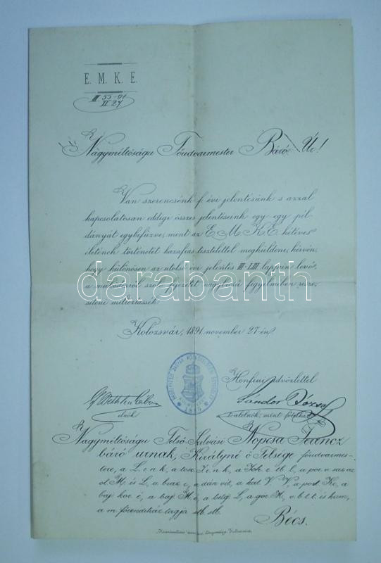 Leírás: 1891 Emke levél gróf Bethlen Gábor erdélyi fejedelem aláírásával