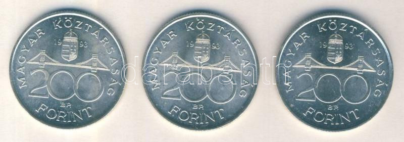 Leírás: 1993. 200Ft Ag "MNB" (3x) T:2