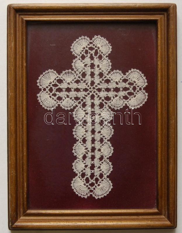 Leírás: Brüsszeli csipke feszület keretben 16x21cm
