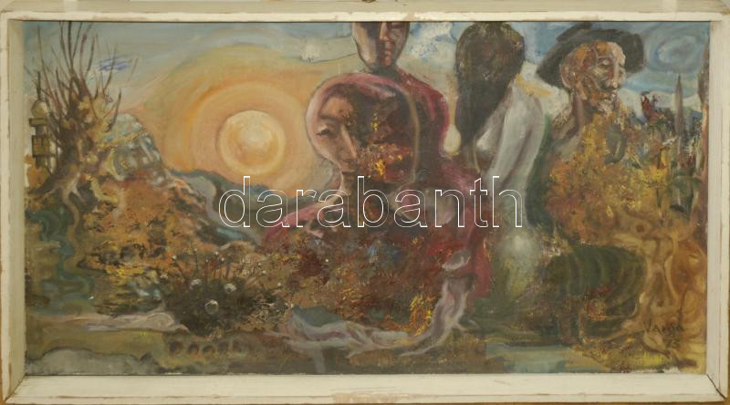 Leírás: Varga István (1917-?): A világ vagyok. Olaj, vászon. Jelzett. keretben 54x95 cm