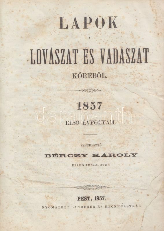 https://www.darabanth.com/hu/156-Gyorsarveres/156.0/Festmeny-mutargy-papirregiseg-egyeb/Konyvek-Vadaszat~1000018/Lapok-a-lovaszat-es-vadaszat-korebol-1857-3Cbr3Ejan-15--dec-30-Elso-evfolyam-1-24-~II487711