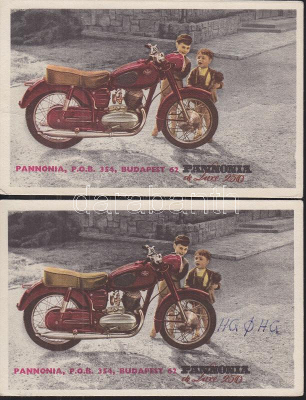 Leírás: 2 db rádióamatőr képeslap Pannonia DeLuxe 250 motorkerékpárral