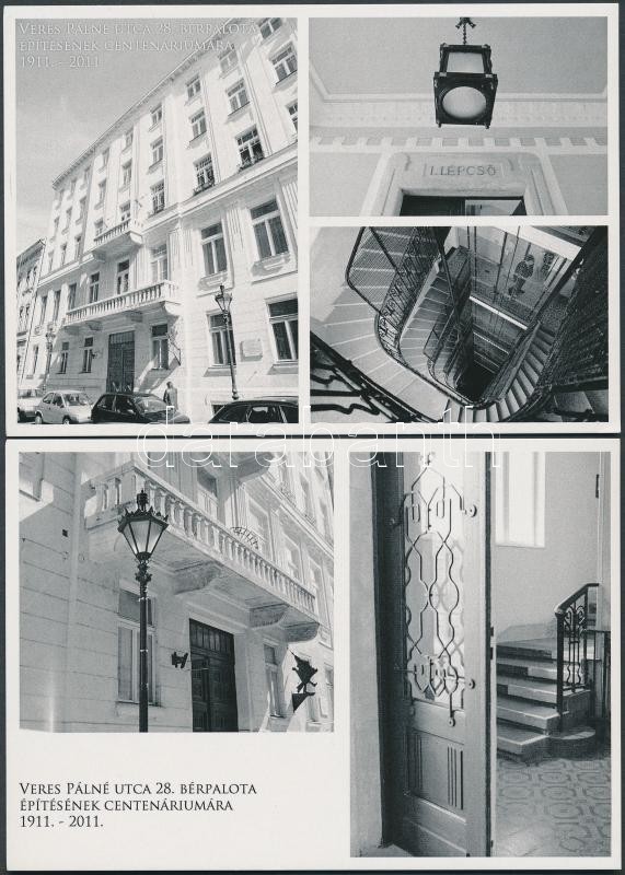 Leírás: Budapest V. Veres Pálné utca 28. 100 éves kis szériás 5 db-os modern képeslap sorozat