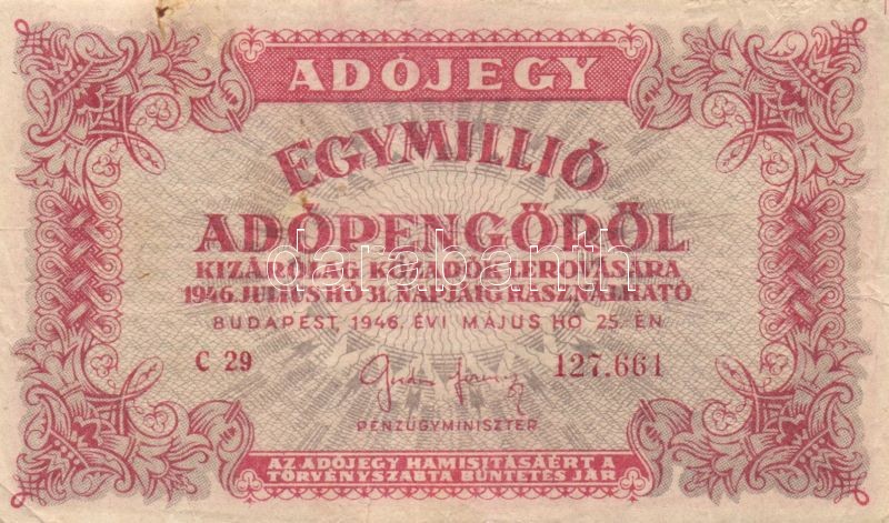 Leírás: 1946. 1.000.000AP fordított címer (5x) T:II,III,III-