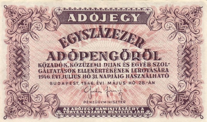Leírás: 1946. 100.000AP fehér papíron (4x) T:II