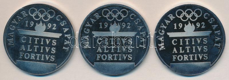 Leírás: 1992. "Barcelonai olimpia-Magyar csapat" ezüstözött emlékérem 3klf darabja Szign.: Papp László T:PP