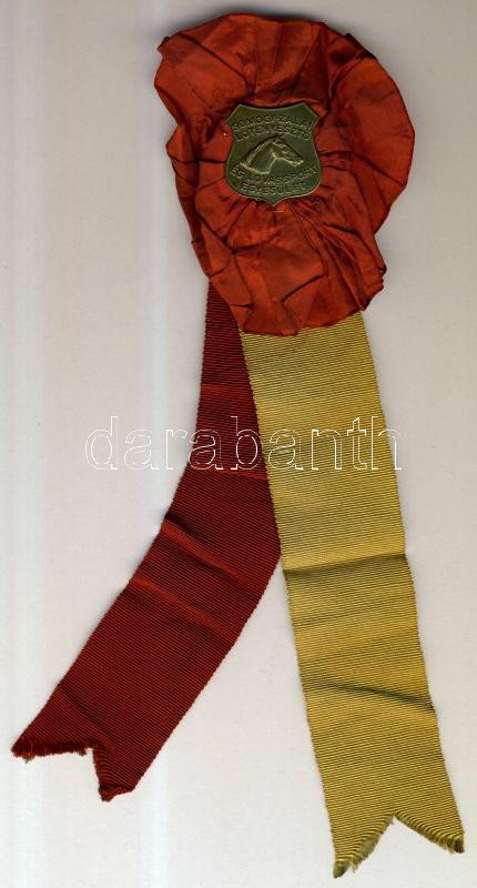 Leírás: cca 1930. "Somogy-Zalai Lótenyésztő és Lovassport Egyesület" díjérem szalaggal