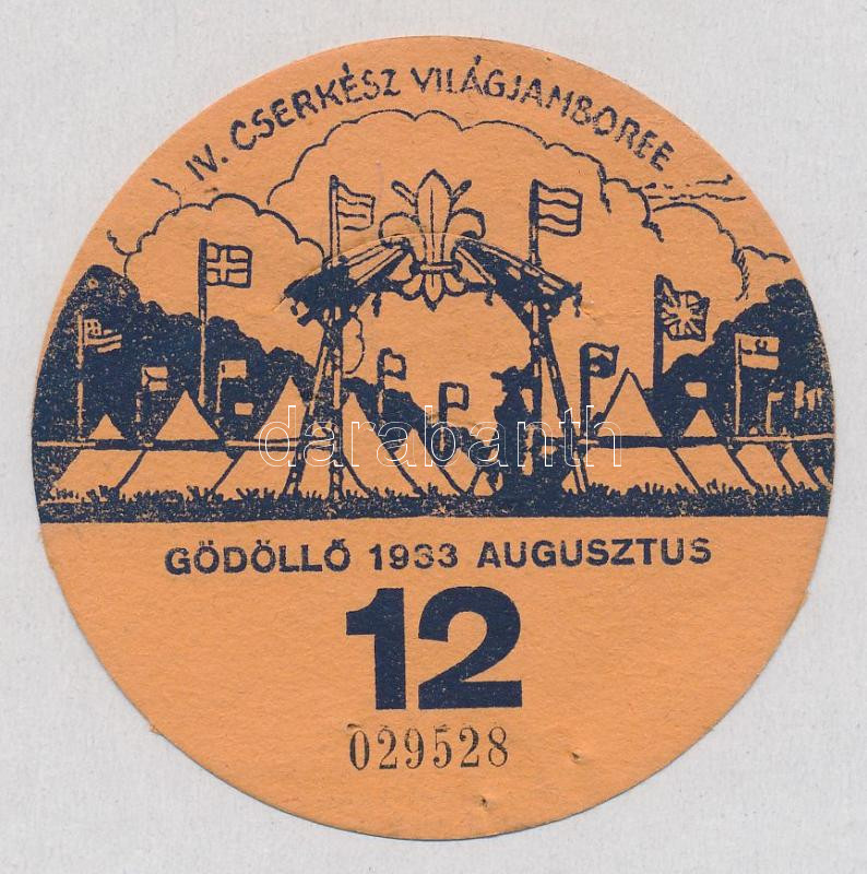 1933 Gödöllő Jamboree vasúti kedvezményre jogosító bón a Jamboree 12. ... https://www.darabanth.com/hu/157-Gyorsarveres/157.0/Festmeny-mutargy-papirregiseg-egyeb/Cserkesz~500008/1933-Godollo-Jamboree-vasuti-kedvezmenyre-jogosito-bon-a-Jamboree-12-napjara~II480906