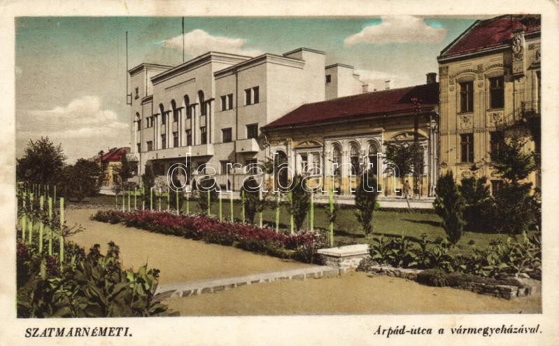 Szatmárnémeti County hall, Árpád street https://www.darabanth.com/hu/157-Gyorsarveres/157.0/Kepeslapok/Erdely~267/Szatmarnemeti-County-hall-Arpad-street~II496334
