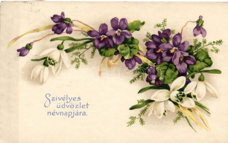 Nameday greeting card, flowers litho https://www.darabanth.com/hu/157-Gyorsarveres/157.0/Kepeslapok/Udvozlolap~500104/Nameday-greeting-card-flowers-litho~II494262