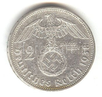 German Third Reich ... https://www.darabanth.com/hu/157-Gyorsarveres/157.0/Numizmatika/Kulfoldi-fem-es-ezustpenzek~500126/Nemet-3-Birodalom-1938A-2M-Ag-Hindenburg-T2-3-3Cbr3EGerman-Third-Reich-1938A-2-Marks-Ag-Hinden~II493601