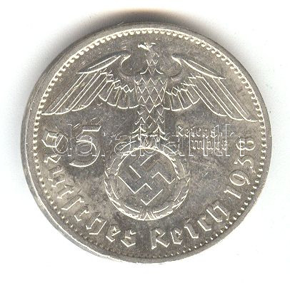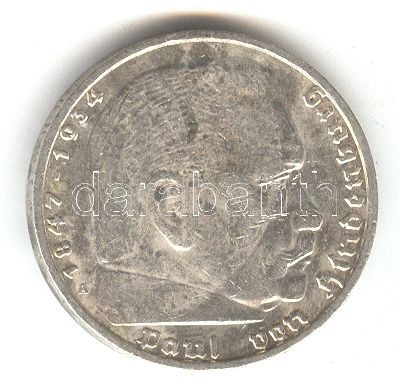 German Third Reich 19... https://www.darabanth.com/hu/157-Gyorsarveres/157.0/Numizmatika/Kulfoldi-fem-es-ezustpenzek~500126/Nemet-3-Birodalom-1938A-5M-Ag-Hindenburg-T2--3Cbr3EGerman-Third-Reich-1938A-5-Marks-Ag-Hindenbu~II493612
