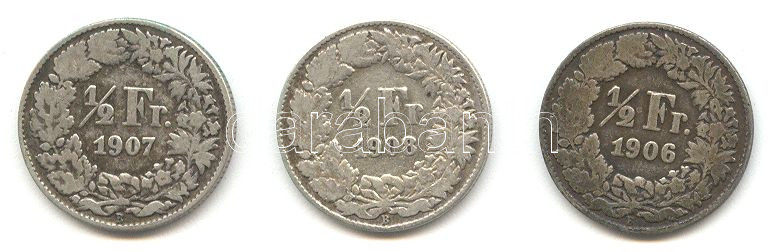Switzerland 1906/1907/1908 1/2... https://www.darabanth.com/hu/157-Gyorsarveres/157.0/Numizmatika/Kulfoldi-fem-es-ezustpenzek~500126/Svajc-190619071908-12Fr-Ag-3x-T3-3Cbr3ESwitzerland-190619071908-12-Franc-Ag-3x-CF~II495235