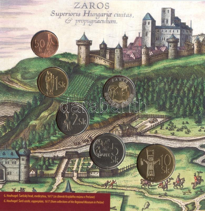 Szlovákia 2005. 50h-10K 5db klf érme + Zaros, Saris emlékérem "Szlovákia Történelmi Vidékei" bemutató szettben T:BU